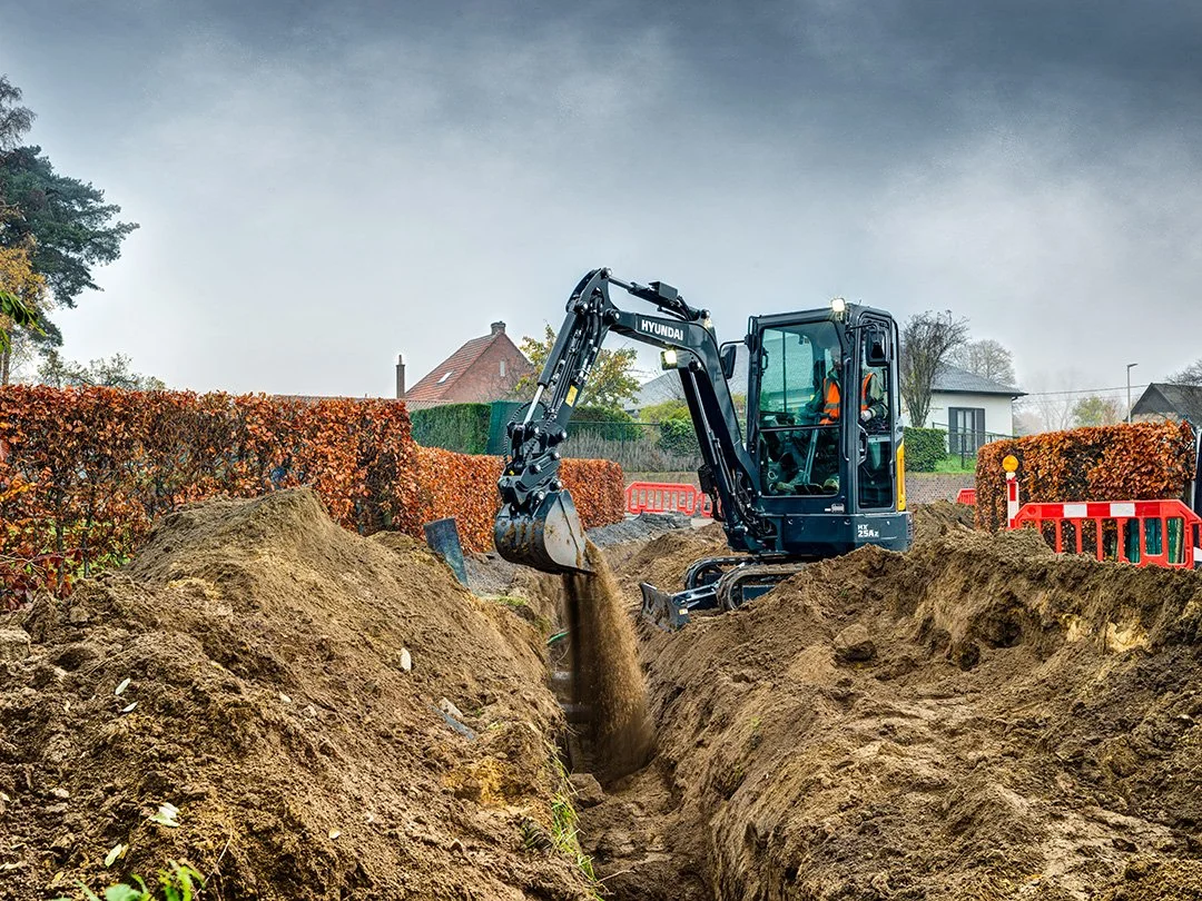 This Compact Excavator is part of Hyundai’s A-series: a fresh generation of construction equipment that complies with the European stage V emission levels.